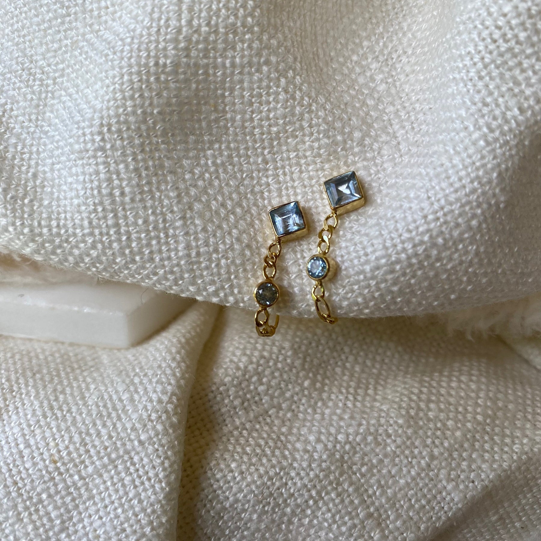 A talisman complimentary to any hoop or perfect on its on, the Evie's are dusted with Blue Topaz on a classic chain with a twist and exude their own charm and effortlessly elevate any outfit.